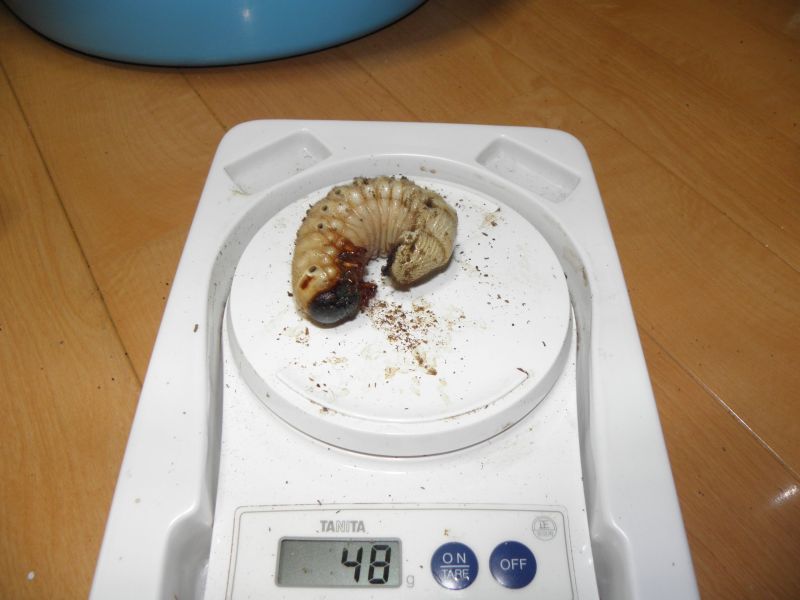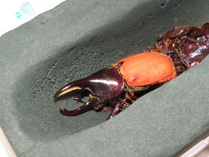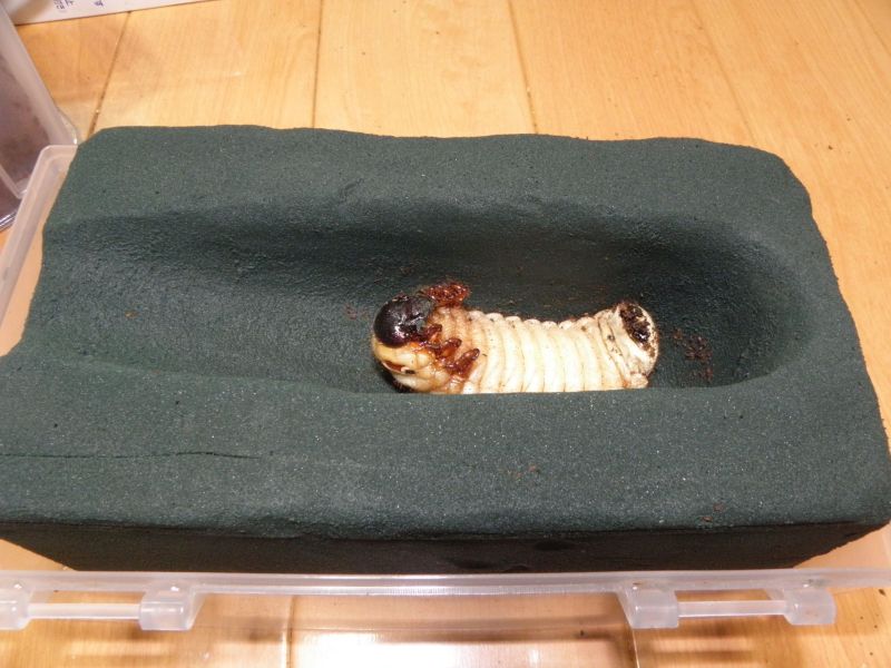今回のセットは ①産卵木入り ②マットのみ で、セット期間は約一ヶ月。 結果だが、②より卵6個と幼虫16頭がでてきた。 ①は産卵痕を材に見ることはできたが、ほとんどが腐ってしまった模様。 ウォレスは材産みと聞いていて、昨年も材でセットしたけど、今回の結果を見る限りでは マットのみの方がいい結果になった。 (ちなみに昨年は6頭しか幼虫を得られなかった) 卵と幼虫の回収後改めて再セット。 今度はマットのみで2セット組んでみる。 これで、やっぱり卵と幼虫を得られたら、来期以降はマットのみだけでセットしようと思う。 5/31夜追記・・・・・ ①の♀、追いかけしておこうと♂と同居させておいたところ・・・・ さっきみたら、真っ二つに ![]() ウォレスは今まで♀殺しは経験無かったけど、 やっぱり、先輩諸氏の言うとおり、♀殺ししてしまう種だということを身をもって・・・・ 次回からは顎縛ってからパリングしなきゃな・・・ PR