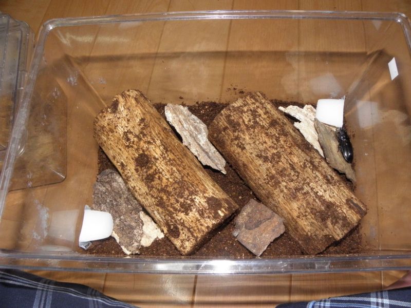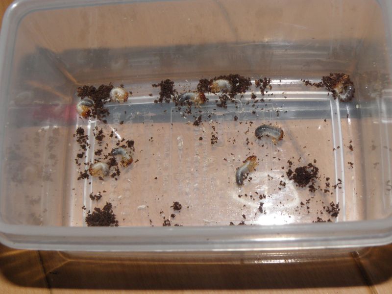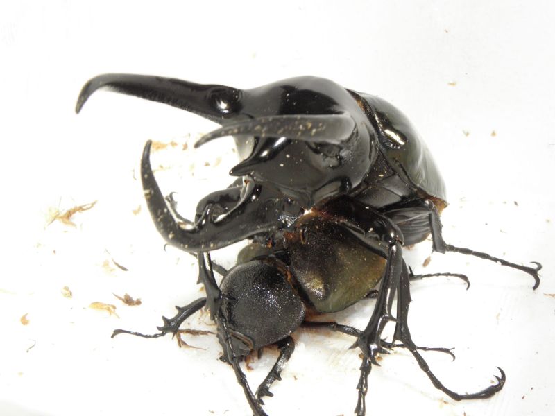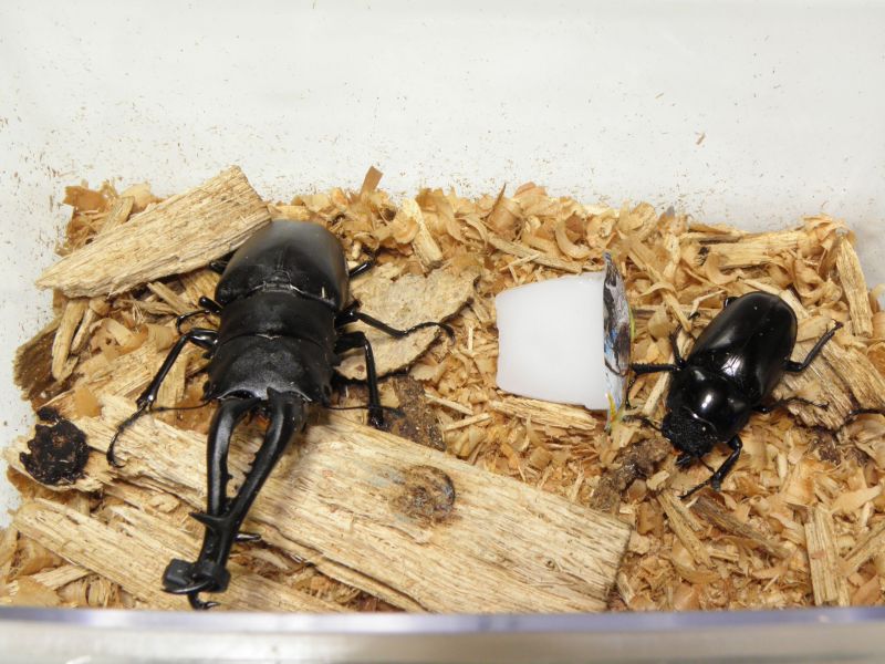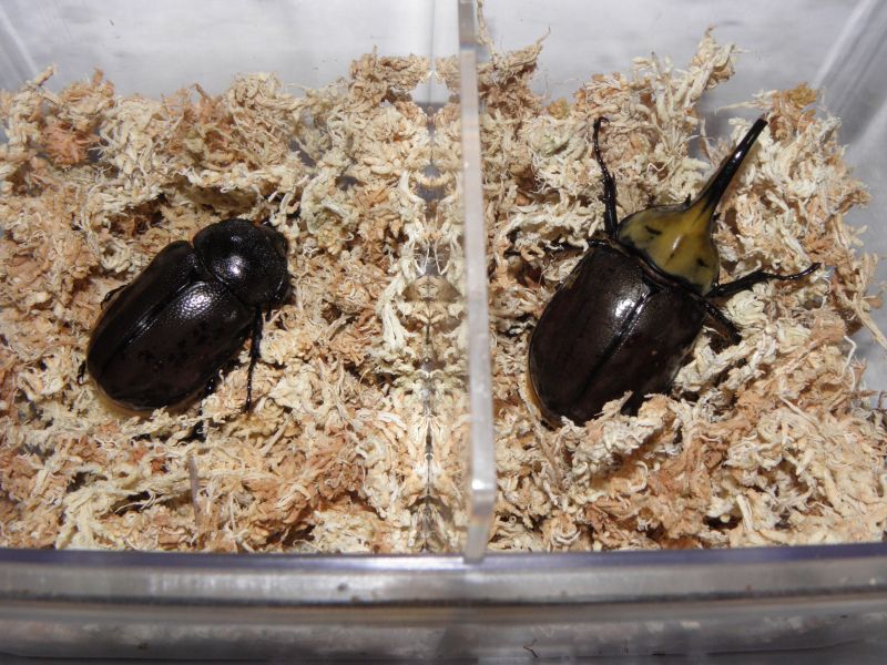 今日は産卵セットをいくつか割り出しをしたり、ケースや瓶の掃除をやった。 割り出ししたセットは以下のとおり ①ギラファケイスケイのセット3組 ♂はどっちも同じ110mmの奴。 ♀だけは3匹準備 結果・・・さすがは爆産系・・・・卵回収になったけど、結構とれてた。 ぶっちゃけ、数えるのがめんどくさくなって、数えるのをやめたw ついでなんで、もう一匹♀を準備してペアリング中。 ②サンギールメタリのセット1組 結果・・・・これも数えるの、やめました・・・ 2ヶ月ほど放置してたんだけど、こんな感じ^^ ③ウォレスのセット2組 結果・・・片方だけから初令4,卵4個 材+マットのセットだったけど、卵も幼虫も共にマットから。 去年は材からほとんどとれたけど、今年は傾向が違うのか? 今年は♀が3匹いるから、 A,Bセット・・・材+マット Cセット・・・・・・マットのみ で、ちょっと様子見てみようと思う。