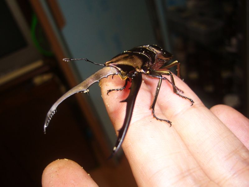 まだ、♂=蛹5,♀=蛹3,幼虫5という状態。 ちなみにこの子たちの親はというと・・・まだ元気に生きてます^^ 親のデータはというと、 Mesotopus tarandus コンゴ産 ♂:58mm WF1 ♀:43mm WF1 ※♂♀別血統 しかし、タランドゥス、なかなか長生きだなぁ・・・ 幼虫期間も短く、長生きといいこと尽くめのクワだ。 もっとも、幼虫飼育がカワラ菌糸になることだけが欠点かなぁ・・・ クワガタショップMDでもタランドゥスが羽化していたが、 ♂が多く、♀が不足しているとのことなので、♀4匹を譲り、 さらに会社の同僚に欲しがっている人がいたので、下記の2ペアを譲った。